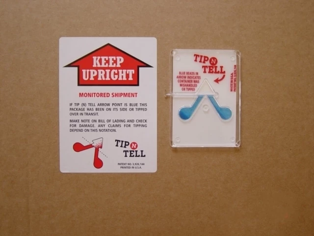 Tip N’ Tell is a tilt indicator that is mounted on the outside of your shipment. It reveals whether your box has been tipped more than 90 degrees.